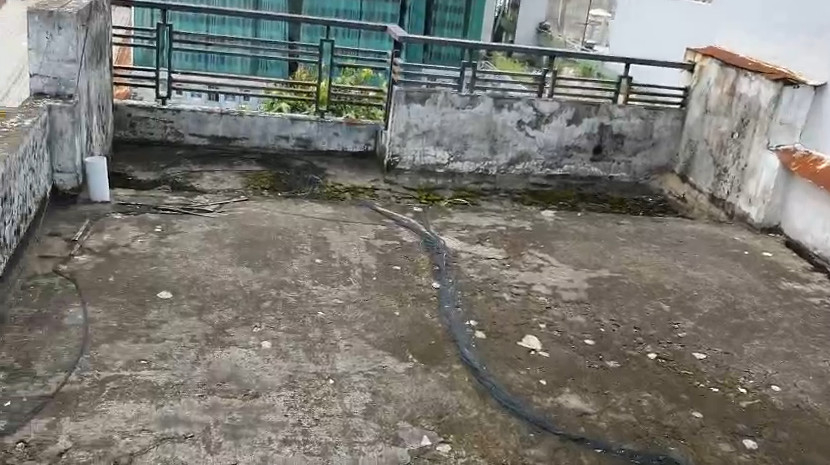 - Có dấu hiệu xuống cấp, xuất hiện các vết nứt hình mạng nhện trên mái. - Sê nô bị thấm. |