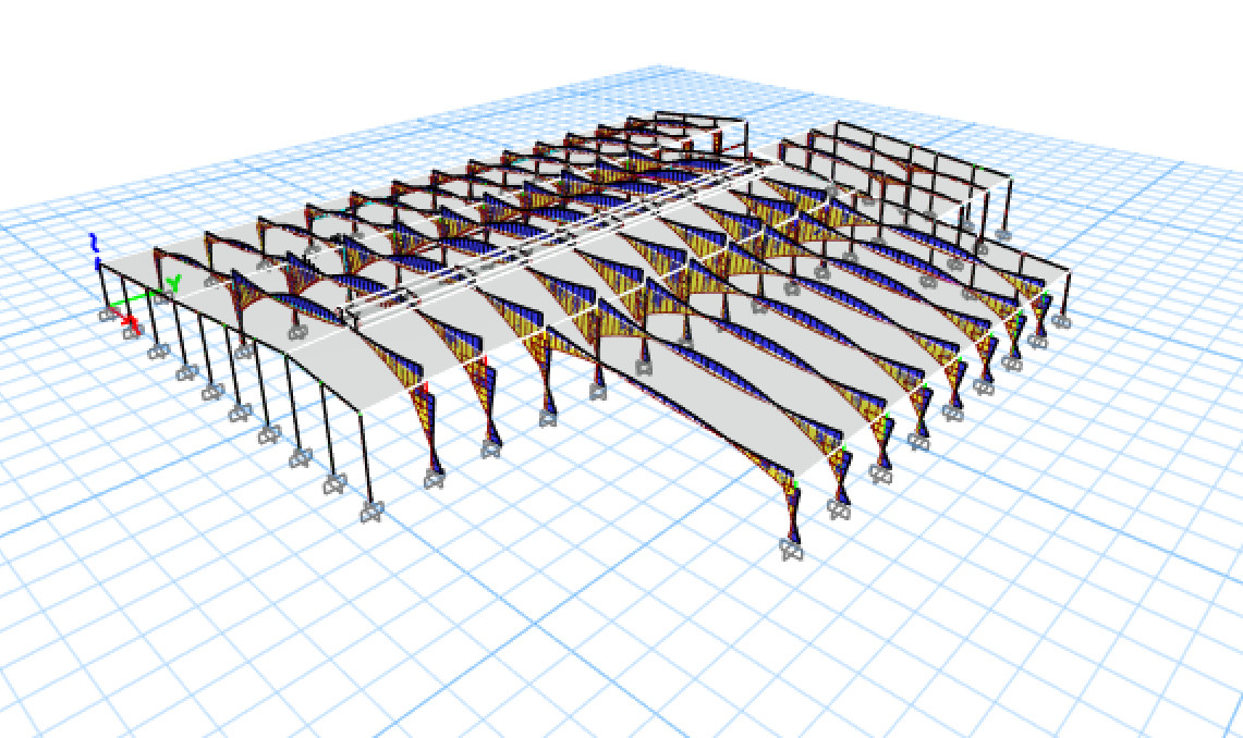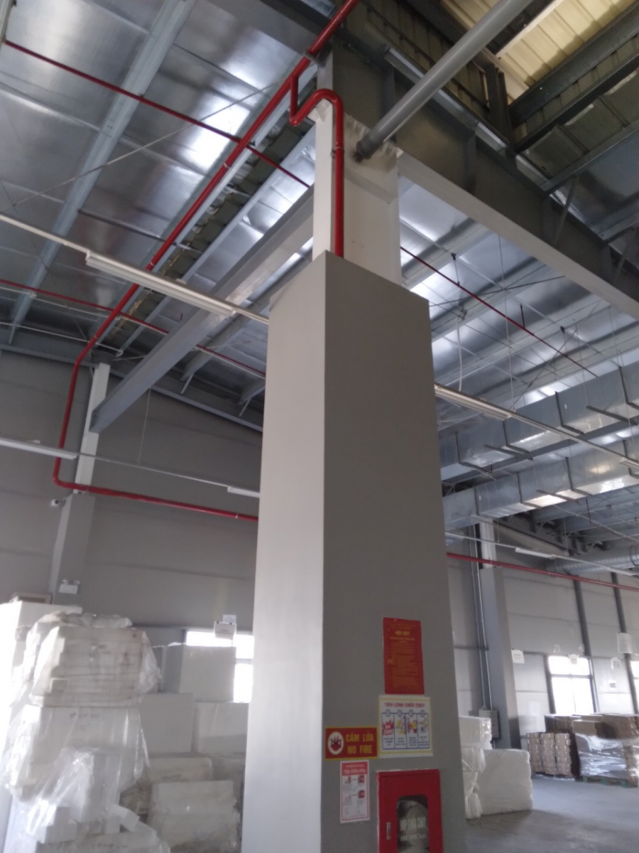 - Diện tích nhà xưởng sản xuất : 10864m2. Công trình ở trục Y10-Y15/X1-X3, Y4-Y7/X12-X15 sử dụng kết cấu bê tông cốt thép, còn lại nhà xưởng sử dụng kết cấu thép, hệ cột chính là cột thép, hệ tường gạch, hệ vì kèo và các thanh giằng thép, hệ mái tôn.