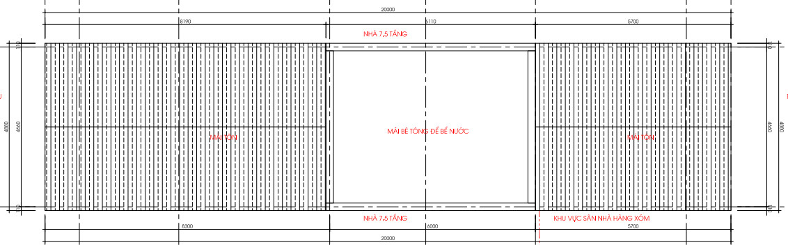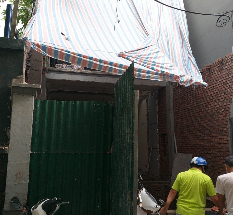 Công trình được che chắn bởi các công trình xung quanh. Hai bên công trình là 2 căn nhà 7 tầng, đường giao thông phía trước nhà, sau nhà là đình làng.