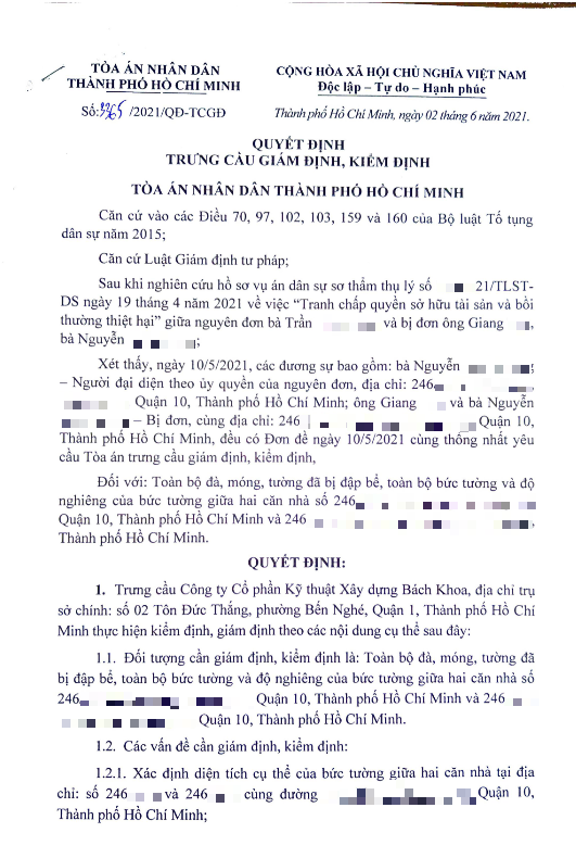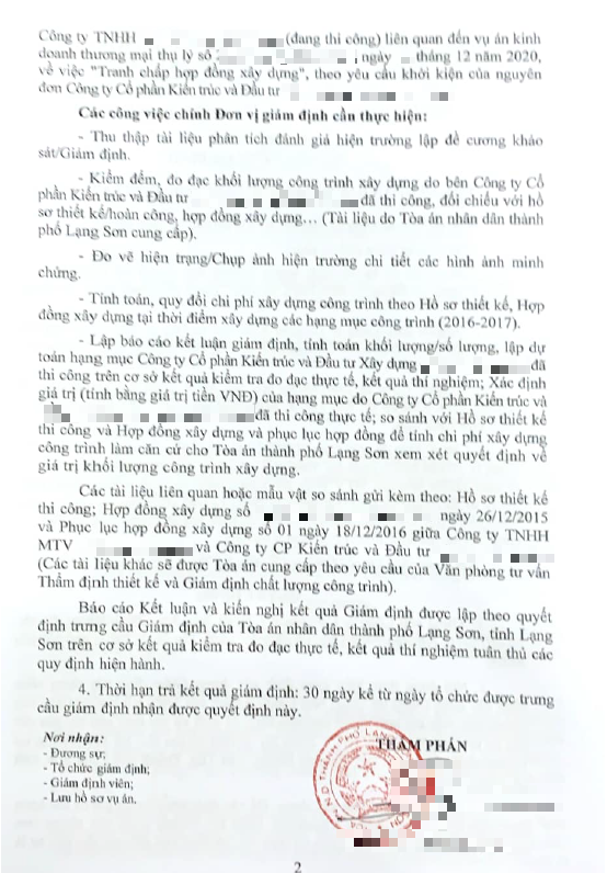 2. Kiểm định nguyên nhân công trình bên làm nứt, hư hỏng, lún sụt nền công trình của nguyên đơn.