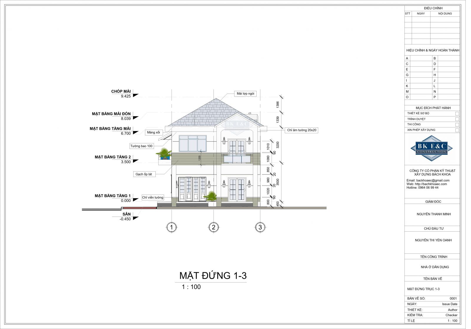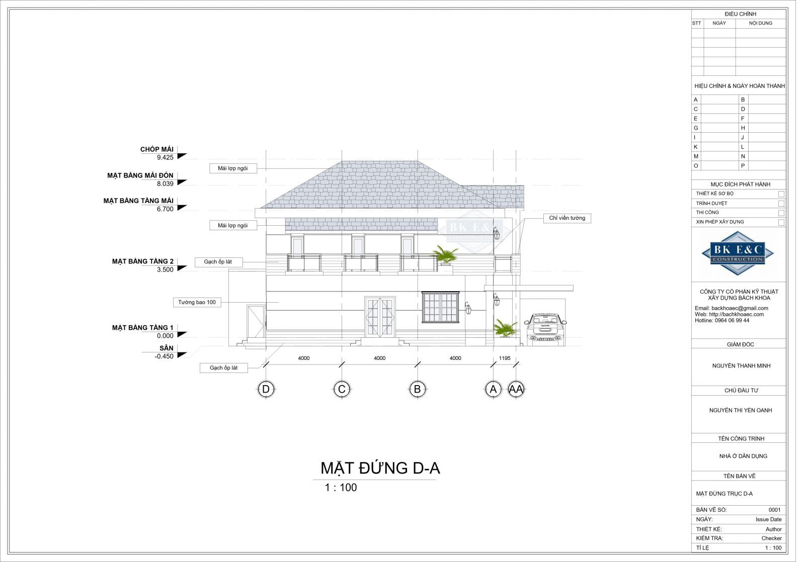 - Mặt đứng công trình: