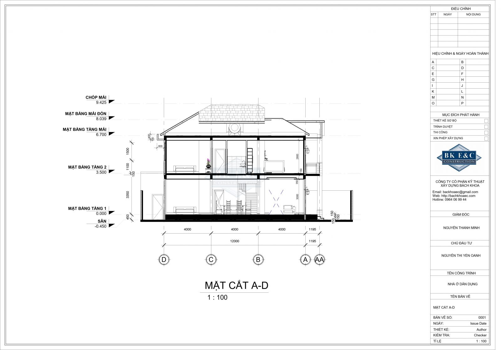 - Mặt cắt công trình: